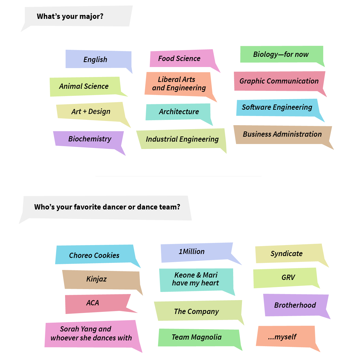 The dancers that make up the club come from all different backgrounds, with different interests, favorites, and important memories from being a member. However, they unite over some other questions...